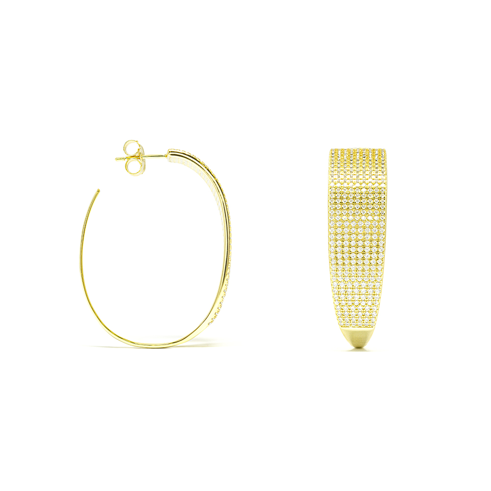 These 18ct yellow gold plated oval shaped Silver Hoop Earrings will add a glam chic touch thanks to their unique style and the dazzling sparkle of cubic zirconia stones. A wonderful accessory that will elevate your look from a morning office look to an evening cocktail party.