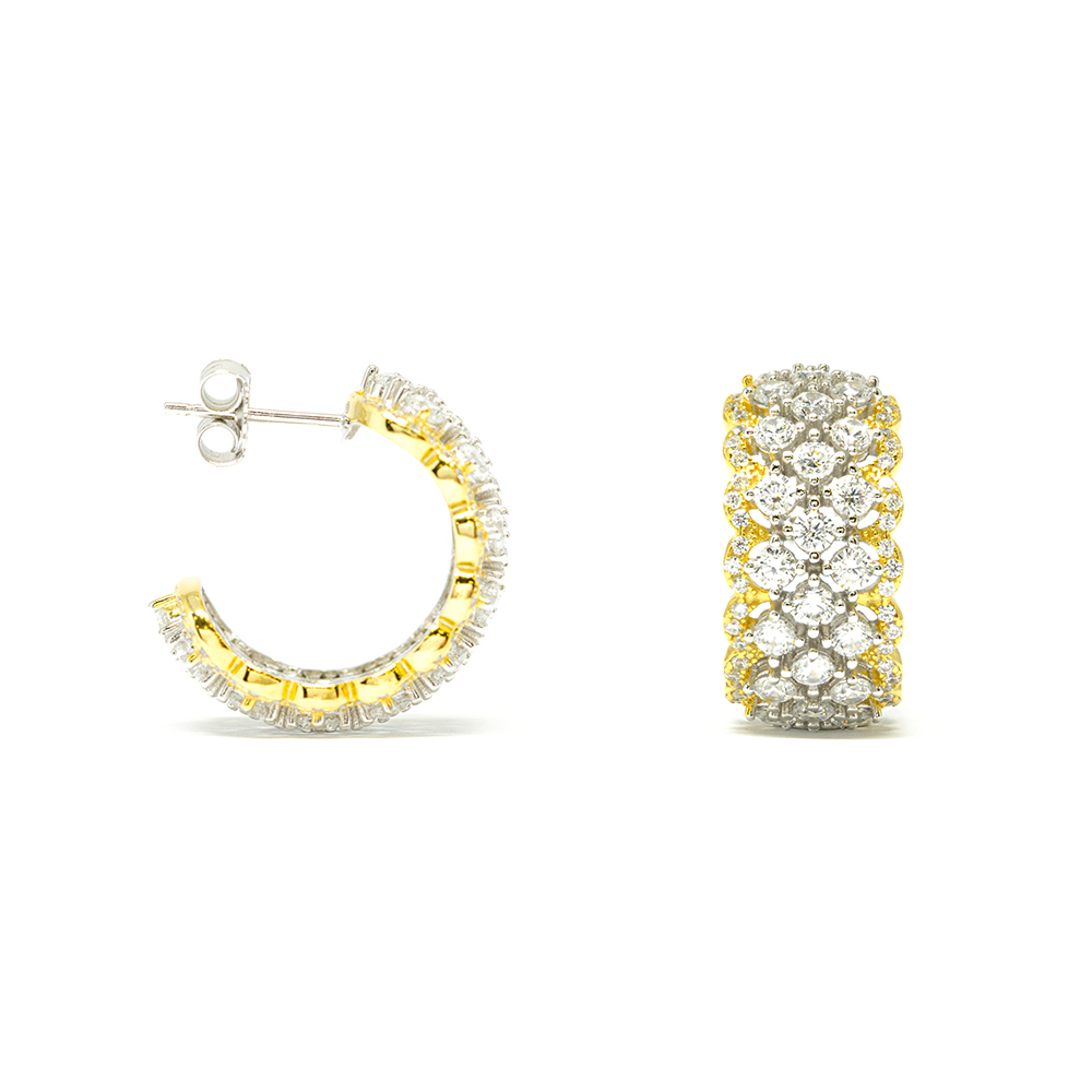 These 18ct yellow gold plated Silver Earrings will add a glam chic touch thanks to their unique style and the dazzling sparkle of cubic zirconia stones. A wonderful accessory that will elevate your look from morning for an office look to evening for a cocktail party.