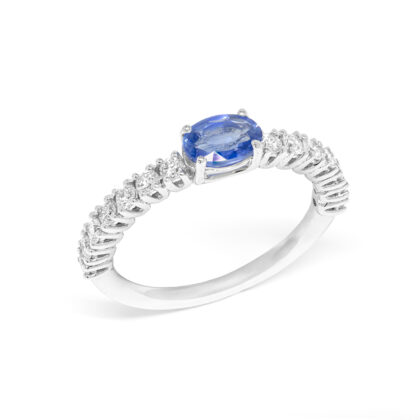 Δαχτυλίδι minimal σειρέ με διαμάντια και μονόπετρο oval saphire λευκόχρυσο 18k