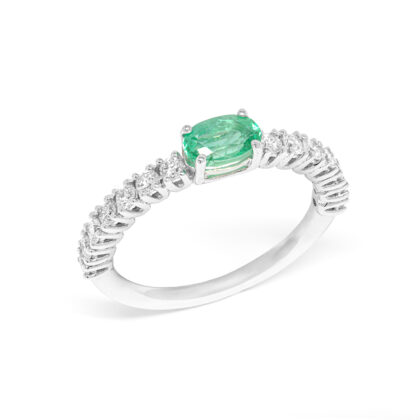 Δαχτυλίδι minimal σειρέ με διαμάντια και μονόπετρο oval emerald λευκόχρυσο 18k